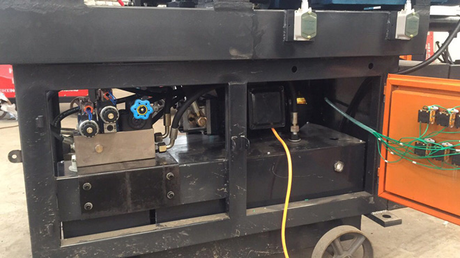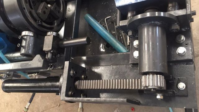 (3)電機(jī)下面新增加油缸推動(dòng)系統(tǒng),使切削剝肋和鋼筋套絲實(shí)現(xiàn)自動(dòng)進(jìn)給,鋼筋套絲工人無(wú)需另行操作