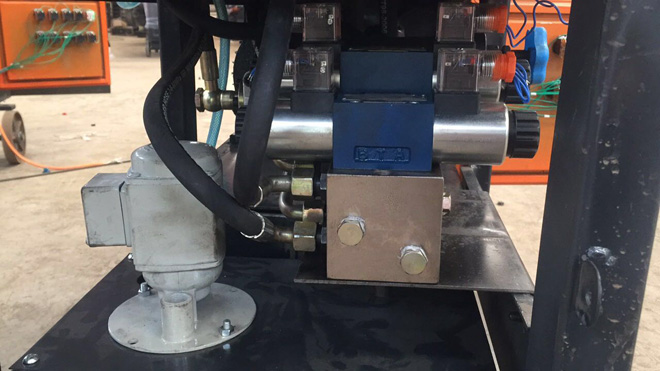 (1)新增加油壓工作站,2.2千瓦電機(jī),油壓換向閥,電磁溢流閥,組成強(qiáng)有力的油壓工作系統(tǒng),為鋼筋滾絲機(jī)的自動(dòng)化剝肋滾絲提供了強(qiáng)有力動(dòng)力供給系統(tǒng),
