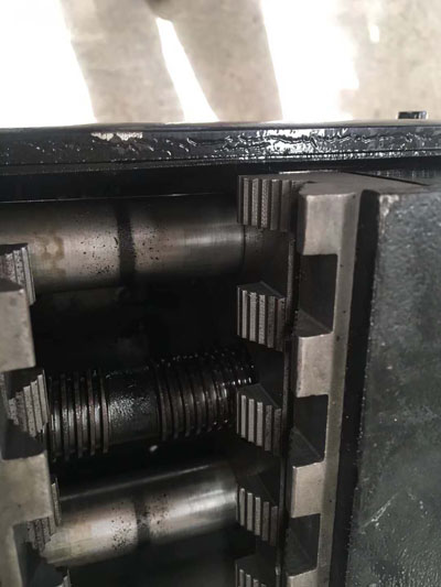 在滾絲機(jī)選擇中,您常常被蒙蔽了雙眼,今天只講一個臺鉗部分的區(qū)別:A型:鋼板雙滑杠,鉗口部分為40Cr整批鍛造,真空爐淬火;B型:整批鑄鐵滑道臺鉗,鉗口部分為鑄鐵,從圖中可以看出鉗口夾鋼筋部分明顯區(qū)別!一套臺鉗成本差了200元!不要再問為什么有的便宜?明天我們繼續(xù)講滑塊部分!